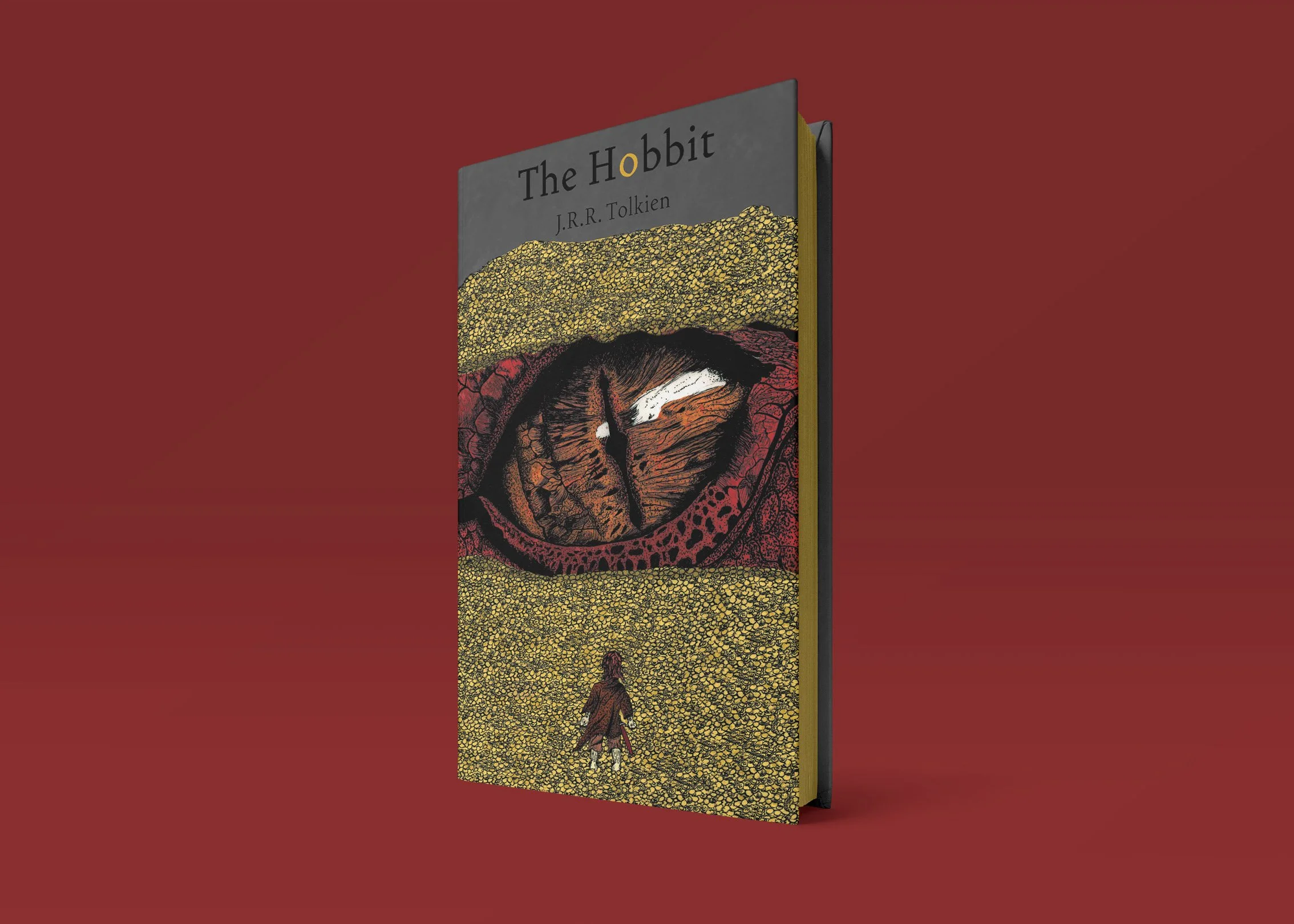 The Hobbit tells the story of Bilbo, a person of very small stature on quest to steal a precious stone from a great dragon, Smaug. This cover contrasts the size of Bilbo with Smaug, who is buried in his gold hoard save for the great eye. The image was made with pen and colored digitally.