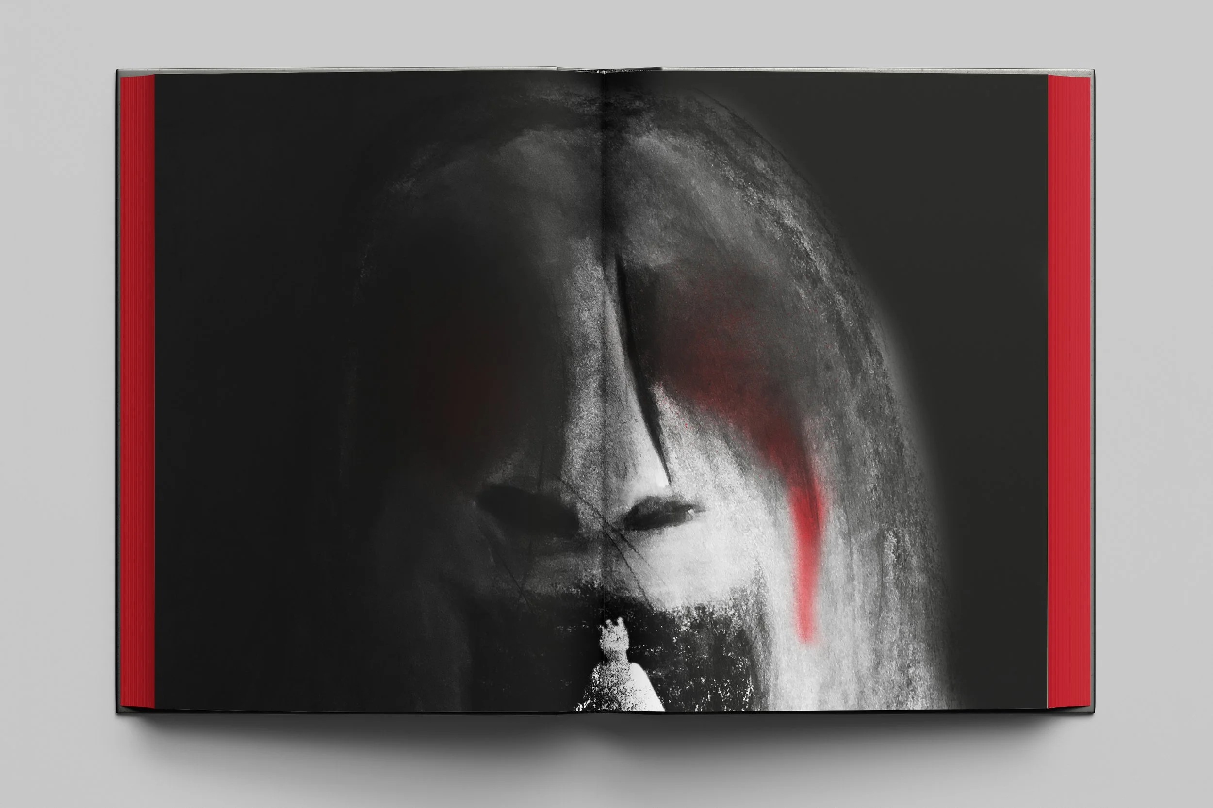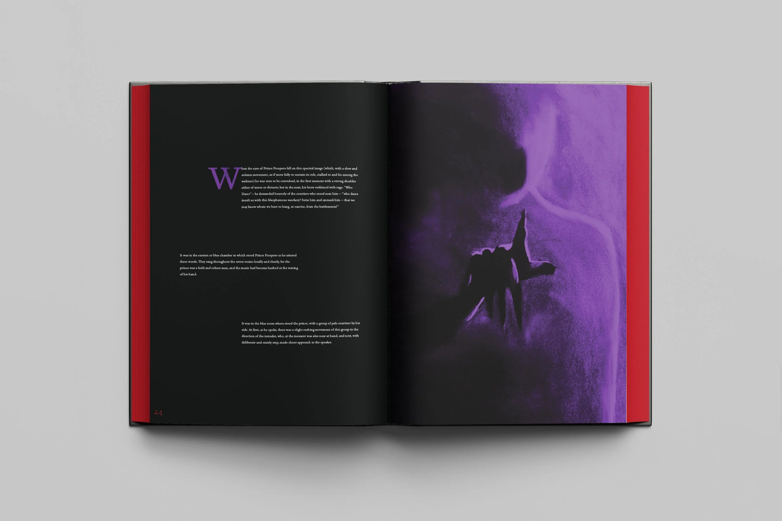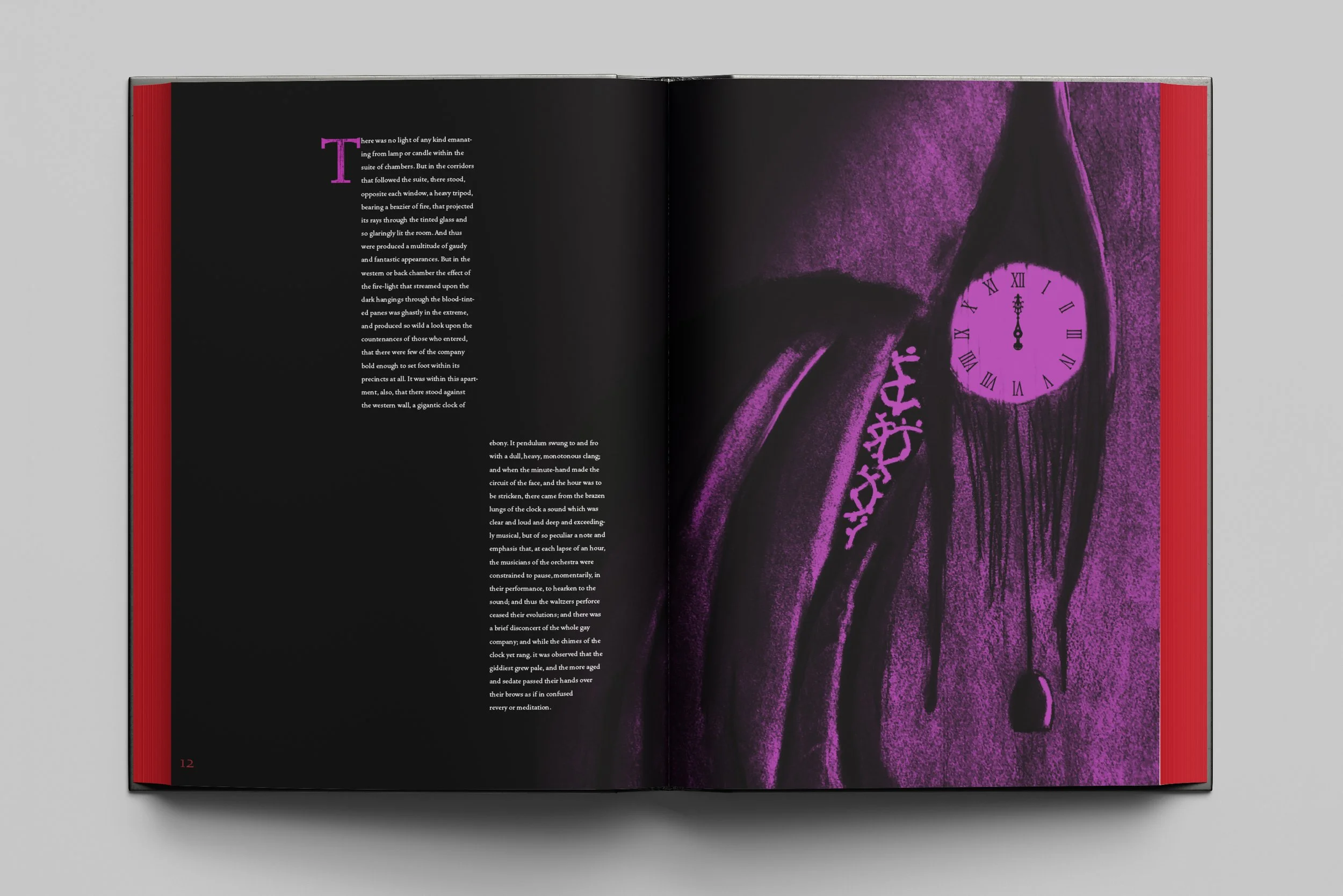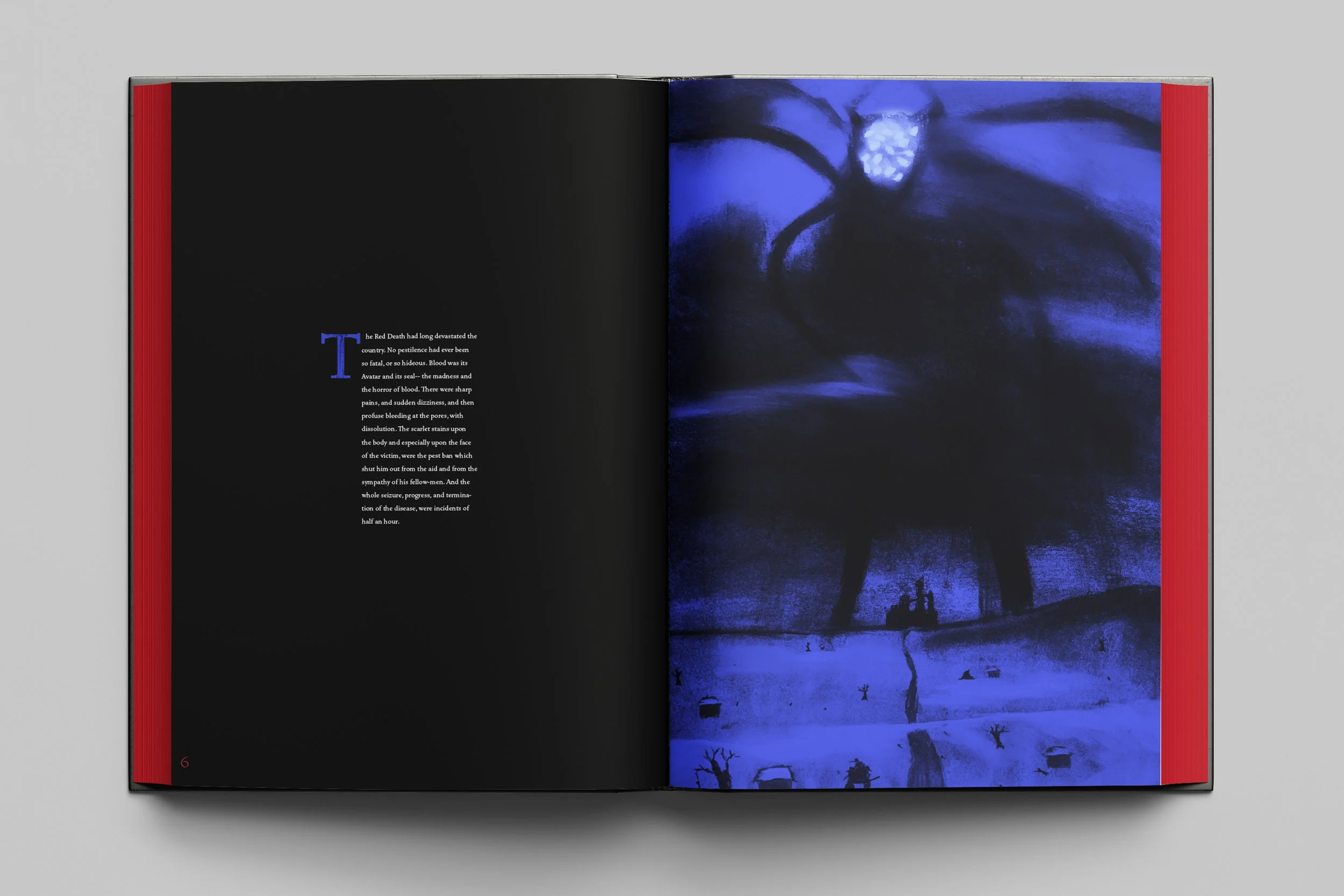 The Masque of the Red Death Edgar Allen Poe’s horror short-story illustrated with surrealist charcoal art digitally colored, printed on black.